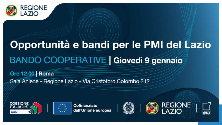 Giovedì 9 gennaio la Regione Lazio presenta il Bando Cooperative, una nuova opportunità per la imprese del territorio.